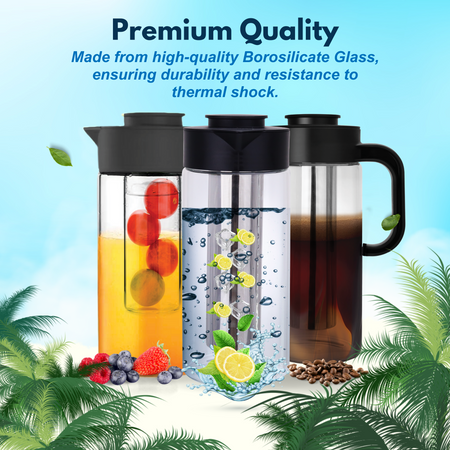 - Durable Construction: Crafted from high-quality borosilicate glass, the pitcher offers excellent durability, resistance to thermal shock, and maintains the natural flavors of your brewed beverages.